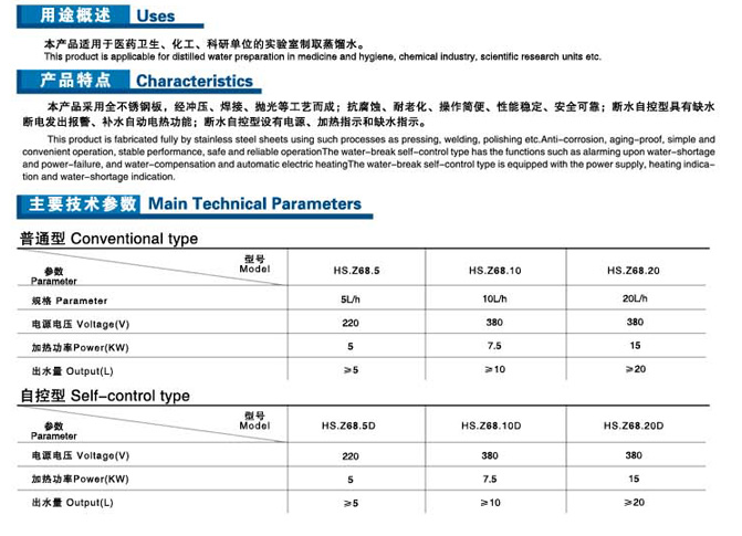 電熱蒸餾水器、斷水自控電熱蒸餾水器系列